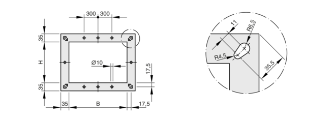 Nenngrößen | 200 × 200 – 1500 × 800 mm¹⁾ |