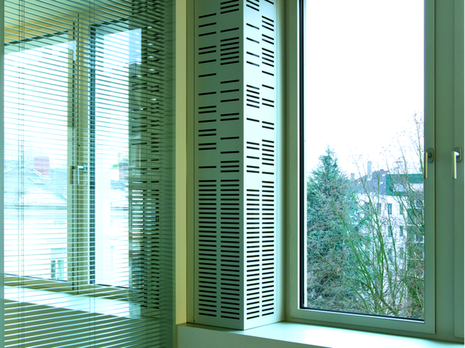 Dezentrale Zu- und Abluftgeräte be- und entlüften den Raum und decken die Kühl- und Heizlast ab.