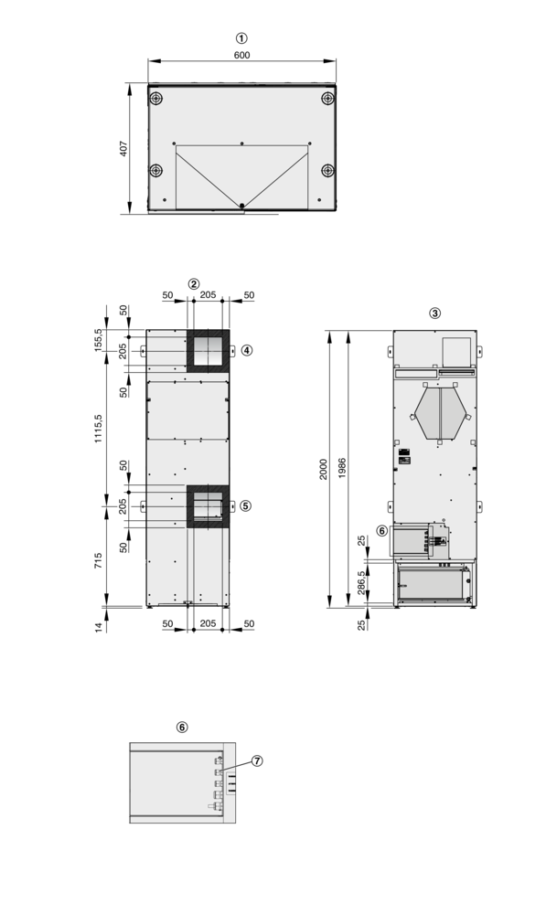 Die Außenluft wird von einem EC-Radialventilator angesaugt und strömt zunächst durch die motorisierte Absperrklappe und den Filter, Klasse F7.