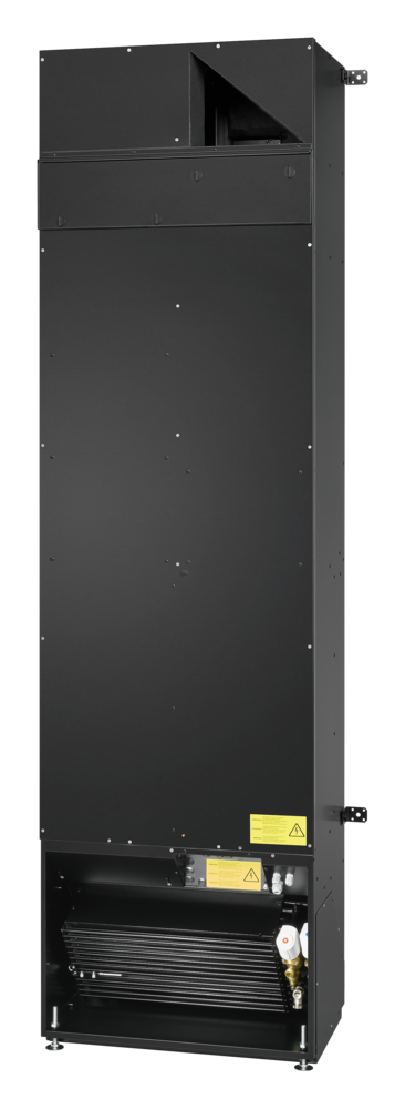 Lüftungsgerät mit Zu- und Abluftfunktion, Umschaltmöglichkeit auf Sekundärluftbetrieb (luftqualitätsabhängig), mit Wärmeübertrager und Wärmerückgewinnung zum vertikalen Einbau vor der Brüstung.
