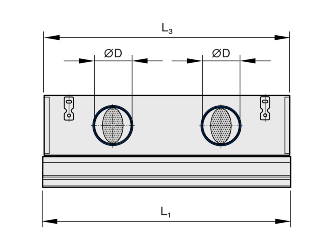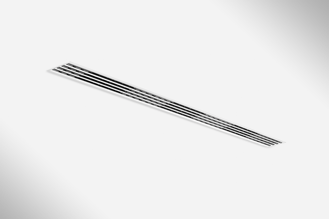 Slot diffusers with individually manually adjustable air control elements and an aesthetically shaped face section with one to four slots, for one-way horizontal, alternating horizontal or alternating angled air discharge. For supply air or extract air. For installation into suspended ceilings. Ready-to-install component which consists of the diffuser face with individually adjustable black or white air control elements, and of a plenum box with side entry spigot and suspension lugs. Clamp fixing or concealed screw fixing Spigot suitable for circular ducts to EN1506 or EN 13180. Sound power level of the air-regenerated noise measured according to EN ISO 5135.