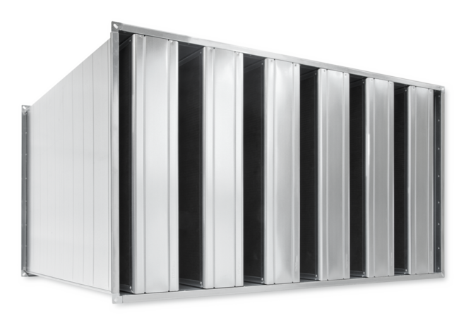 The sound power levels LWA apply to sound attenuators with a cross-sectional area (B × H) of 1 m².