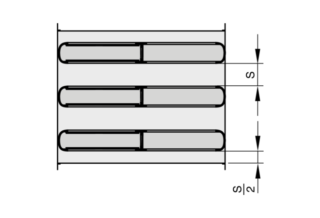 The splitters have a mineral wool infill as absorption material. Part of the splitter surface that runs parallel to the airflow is covered with resonating panels. These panels start oscillating due to the sound (resonance) and hence absorb sound energy. Resonance works best in the frequency range of critical fan noise.