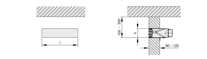 Position of the spigot, defined by the distance of the spigot centre line to the lower edge of the suspended ceiling