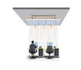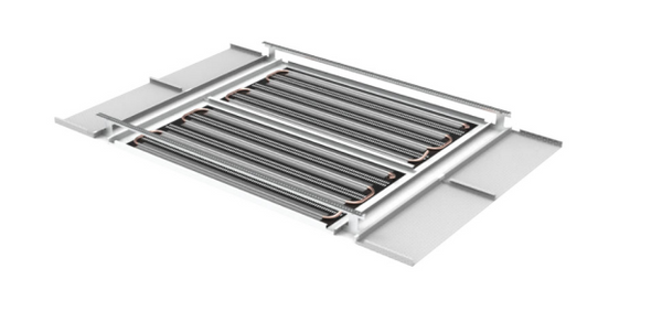 Deckenkühlelemente zur einfachen Kombination mit bauseitigen Metalldeckenplatten in allen marktgängigen Ausführungen. Die Deckenkühlelemente bestehen aus einem Kupferrohrmäander, der mittels speziellen Wärmeleitblechen auf dem Trägerblech verbunden ist. Um die höchste Qualität bei der Wärmeleitung zu erreichen, erfolgt diese Verbindung mittels einer patentierten WLT®Technik. Das Trägerblech ist mit einem Hochleistungsklebeband zur einfachen und werkzeuglosen Verbindung mit der bauseitigen Deckenplatte ausgestattet. Durch die vollflächige Verklebung wird ein optimaler Wärmeübergang über die Kontaktfläche dauerhaft gesichert. Die Trägerbleche sind den vorgesehenen Deckenplattenabmessungen angepasst. Optimierte Kühlleistungen durch Anpassung der Mäanderanzahl und Mäanderteilung möglich. Die Mäander werden, in Abhängigkeit von den bauseitigen Metalldeckenplatten, in verschiedenen Anschlussvarianten ausgeführt. Die Rohrenden der Deckenkühlelemente sind zur Kühlelementinnenseite gebogen, um geringe Einbauhöhen zu realisieren. Verbindungen untereinander und zu den Hauptverrohrungsleitungen erfolgen vorzugsweise mit flexiblen Schläuchen. In Abhängigkeit von den maximal gewünschten Druckverlusten und dem Deckenaufbau können mehrere Deckenkühlelemente zu einem Kühlkreis zusammengeschaltet werden.
