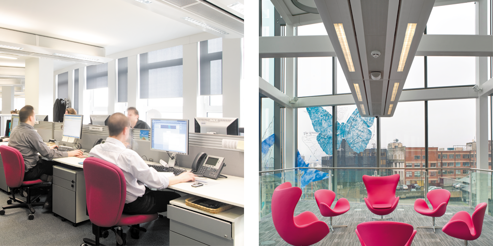 Freihängende Deckeninduktionsgeräte von TROX, wie der SMART BEAM, sind