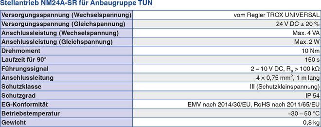 Zuluftgeführtes System VVS-Regelgerät für die Zuluft und Raum-Management-Funktion TVR/200/TUN/RS/M/2/TBZ/500/900/–50
