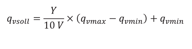 Der Volumenstromsollwert wird von einem übergeordneten Regler (z. B. Raumtemperaturregler, Luftqualitätsregler, Gebäudeleittechnik) vorgegeben. Die variable Volumenstromregelung erfolgt zwischen qvmin und qvmax.