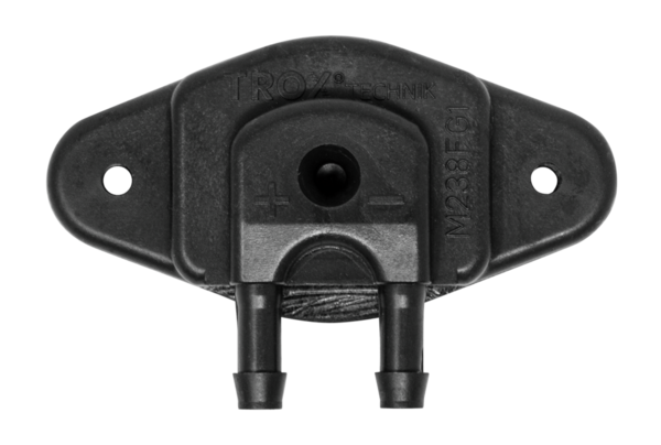 Sensorkopfstück mit Dichtung, Verschlauchungsanschluss in Anordnung + / - von links nach rechts bei nach unten ausgerichteten Anschlüssen, für VVS-Regelgeräte und Messeinrichtungen in eckiger Bauform