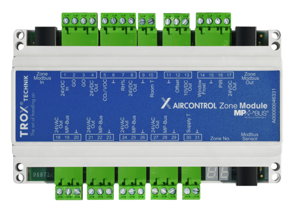 Zonenmodule sind elektronische Regelungskomponenten zur Einzelraumregelung. Temperatur, Luftqualität und Luftfeuchte werden bedarfsgerecht geregelt, unter Berücksichtigung der Belegung.